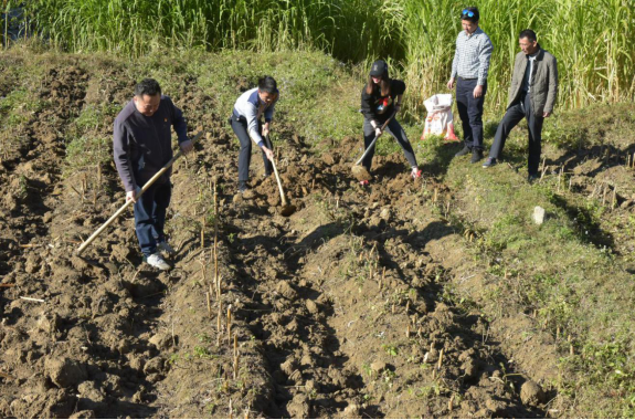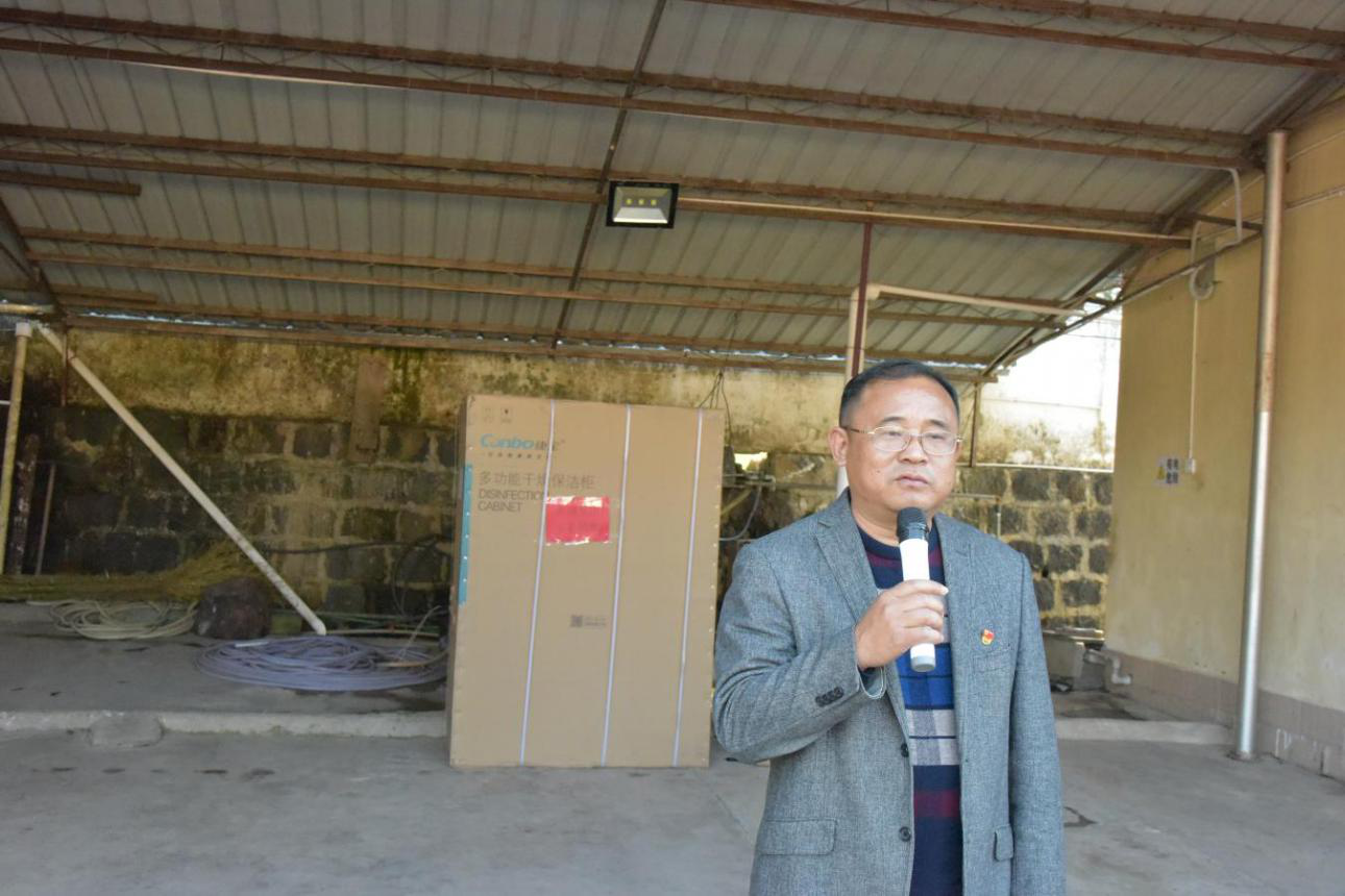 梁河縣農業局副局長、梁河縣阿昌族協會秘書長梁愿昌帶領養瑞集團全體黨員實地
