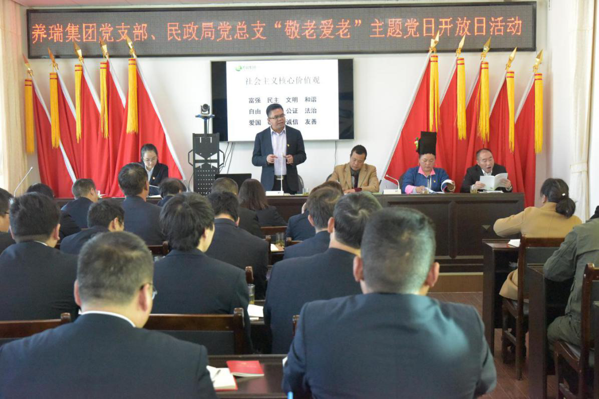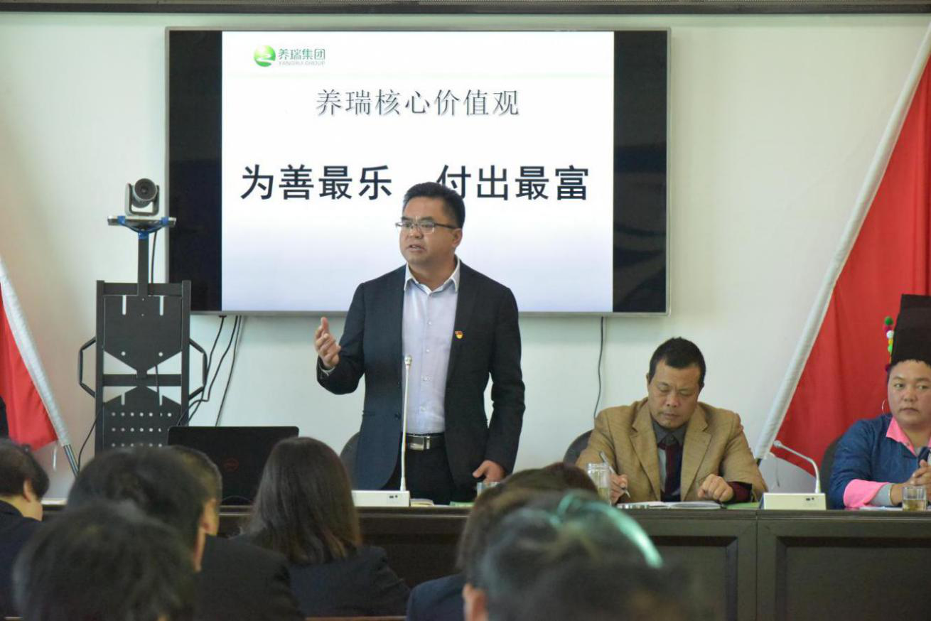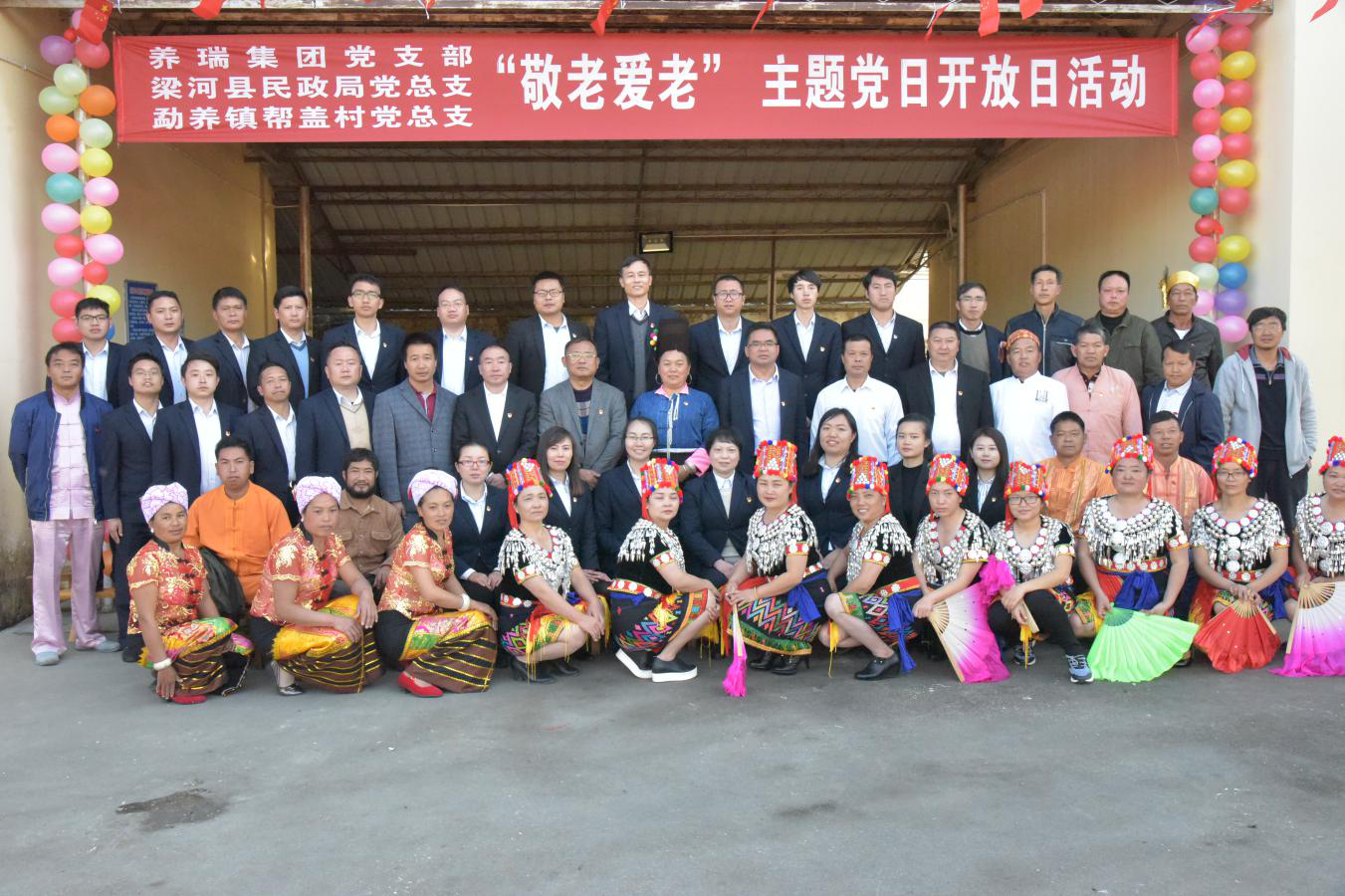 2018年1月7日至10日,在黨支部書記、總裁邵全同志的帶領下,養瑞集團黨支部全體黨員、入黨積極分子、集團領導班子一行35人前往德宏州梁河縣,與梁河縣民政局黨總支和共建支部勐養鎮幫蓋村黨總支,共同開展了“愛老敬老,踐行養瑞核心價值觀”主題黨日開放日系列活動。