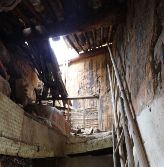 臨近中午,我們又馬不停蹄趕往幫扶的第三個家庭——可保社區李俊友家。經了解,李俊友6歲,上有一個姐姐,父母都患有智障,一家四口僅靠微薄的收入和別人的接濟過日子,房子也是他們的家族親人幫忙湊錢蓋的。來到他家門口,大家還詫異是不是走錯了,外面是紅磚樓房,相比之前兩家房屋狀況要好很多,敲門進去,才看到里外的天壤之別,屋內擺放比較凌亂,雖說是樓房,卻沒有樓梯,只是簡單的搭了木梯,房子還沒有蓋屋頂。因為父母患有智障,與其交流甚少,尤其母親在這么冷的天還在赤腳走動,感受到其家里的生活不易。黨支部書記、總裁邵全代表養瑞集團當即給予2000元幫扶,并與社區書記商量后續解決房屋裝修方案。