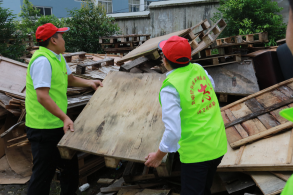 垃圾站旁還堆放了很多雜物、丟棄的家具木頭等,養瑞男同胞們齊心協力,對雜物進行了重新搬運整理,旁邊的通道暢通了,雜物堆放井然有序。