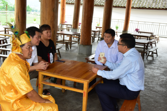 在幫蓋村活動中心,養瑞集團黨支部書記邵全與梁河縣委組織部副部長龍曉銀、縣農業局局長楊榮富以及勐養鎮相關負責人圍坐一起,共同就黨建工作展開交流。