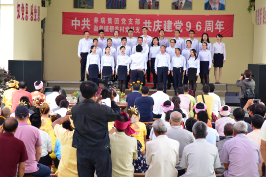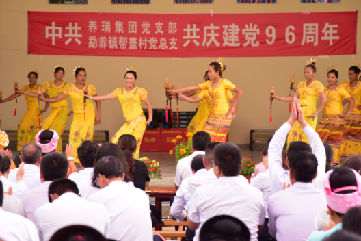 7月1日,云南養瑞科技集團有限公司黨支部來到勐養鎮幫蓋村與村黨總支聯合開展共建共慶“七一”活動,以參觀幫蓋村新農村建設、座談黨建工作、開展文藝活動、篝火晚會的形式,進一步促進企業和農村基層黨組織的資源共享,互幫互學,共同提高,度過了一個有意義的“七一”。