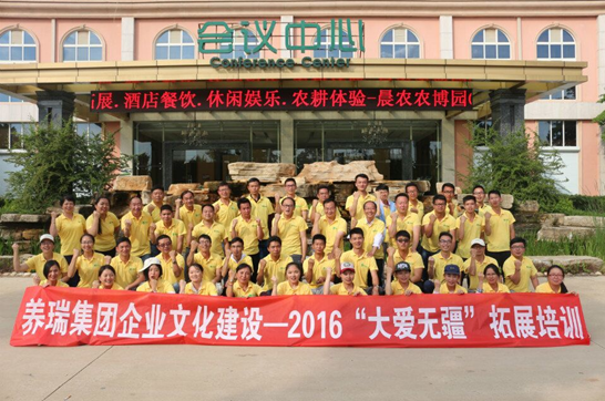 為進(jìn)一步加強(qiáng)養(yǎng)瑞企業(yè)文化建設(shè),提升團(tuán)隊(duì)凝聚力及向心力,增強(qiáng)養(yǎng)瑞人的為善和付出情懷,培養(yǎng)員工的責(zé)任感及歸屬感,2016年6月24日—25日,云南養(yǎng)瑞科技集團(tuán)有限公司在嵩明晨農(nóng)農(nóng)博園開(kāi)展了主題為“大愛(ài)無(wú)疆”的拓展活動(dòng)。