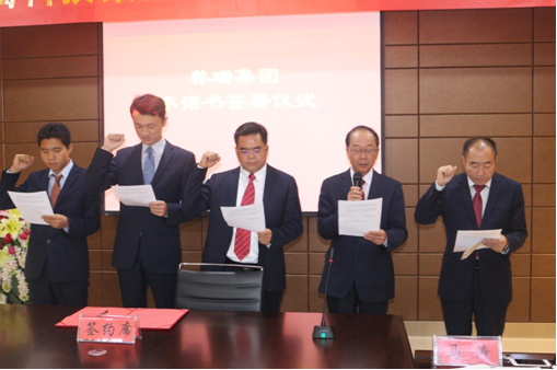 在養(yǎng)瑞集團三周年慶典的莊嚴時刻,養(yǎng)瑞集團中高層舉行了承諾書簽署儀式。中高層領導高舉右拳,面對全體員工鄭重宣誓和簽署了承諾書。這是一份沉甸甸的責任,更是一份義無反顧的擔當。