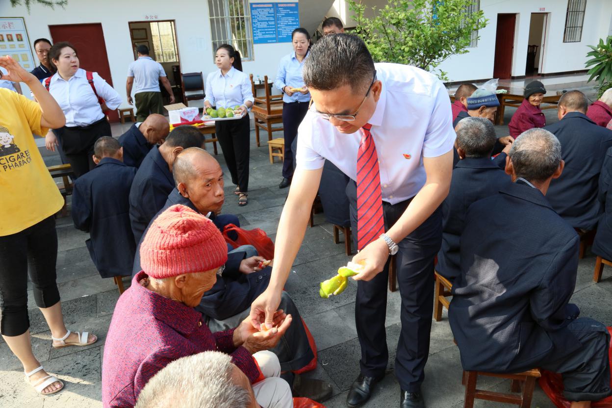 養(yǎng)瑞集團(tuán)黨委書記、董事長、總裁邵全為老人剝柑橘