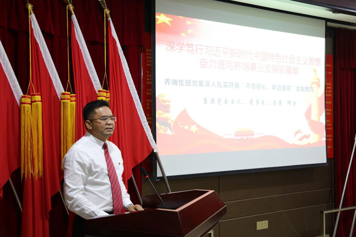 “為中國人民謀幸福,為中華民族謀復興是中國共產黨人的初心和使命。我們黨成立98年來,新中國成立70年來,無論環(huán)境如何艱難,無論形勢如何變化,始終堅守不變的是初心和使命。”會上,集團黨委書記、總裁、董事長邵全深刻闡釋了堅守初心使命對于中國共產黨人的重大意義。他指出,以習近平同志為核心的黨中央決定開展“不忘初心、牢記使命”主題教育,是統攬偉大斗爭、偉大工程、偉大事業(yè)、偉大夢想作出的重大部署。全體養(yǎng)瑞黨員要堅持以習近平新時代中國特色社會主義思想為指引,牢牢把握主題教育的根本任務和總要求,切實加強政治建設、思想建設、作風建設,確保理論學習有收獲、思想政治受洗禮、干事創(chuàng)業(yè)敢擔當、為民服務解難題、清正廉潔作表率,把習近平新時代中國特色社會主義思想轉化為推進養(yǎng)瑞“4個五年規(guī)劃”和“1234567”養(yǎng)瑞黨建工程的實際行動,把初心使命變成養(yǎng)瑞黨員干部銳意進取、開拓創(chuàng)新的精氣神和埋頭苦干、真抓實干的自覺行動,推動“三個會議”(科技大會、新春年會、開班會)精神的貫徹落實,做強、做優(yōu)、做大養(yǎng)瑞事業(yè),增強力量,服務人民。