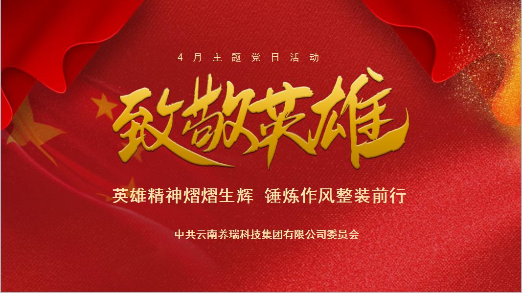 “天地英雄氣,千秋尚凜然。”無數英雄先烈是我們中華民族的脊梁,而英雄精神一直是習近平總書記推崇和倡導的。2020年4月9日上午,養瑞集團黨委組織開展了“英雄精神熠熠生輝,錘煉作風整裝前行”的主題黨日活動。