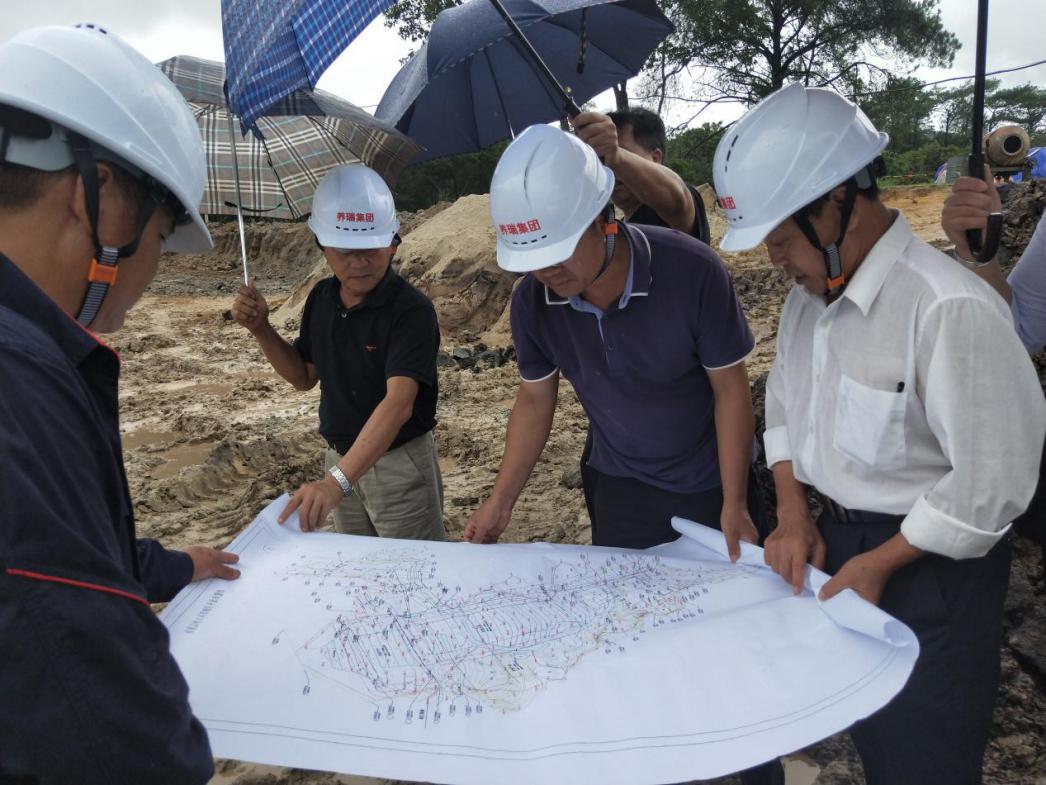 23日上午11時,李正環(huán)副州長一行冒雨到施工現(xiàn)場查看了牛場設(shè)計規(guī)劃及建設(shè)推進情況,并聽取了集團肉牛養(yǎng)殖項目近期至未來10年發(fā)展規(guī)劃匯報。