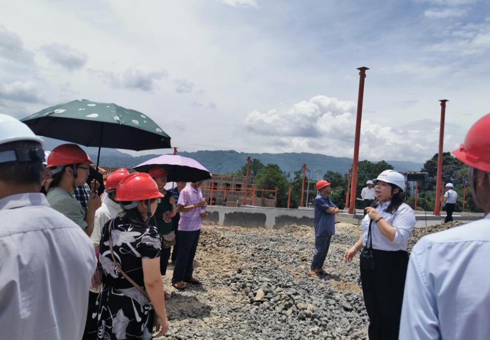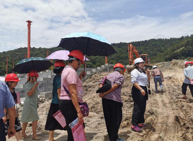 (圖為賈艷蓉總經理帶領老干部一行深入到施工現場)