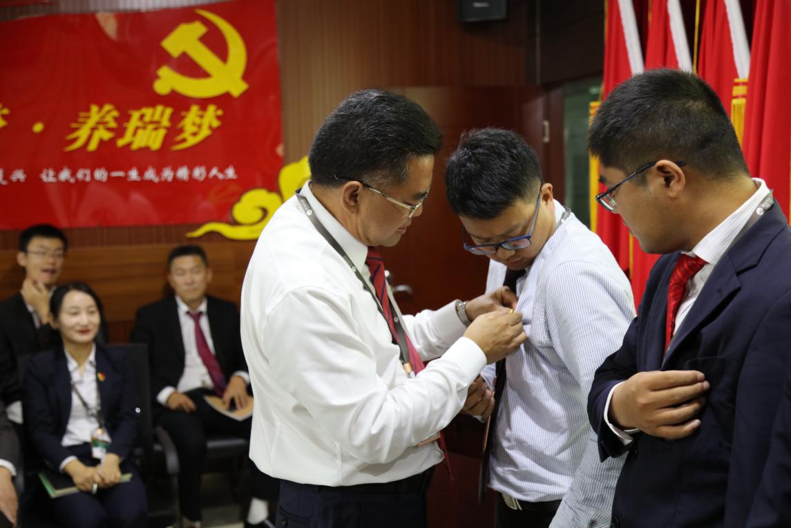 主題黨日活動在重溫入黨誓詞暨新黨員宣誓儀式中拉開帷幕,7名新黨員面對黨旗莊嚴宣誓,并逐個發言表態。黨委書記邵全同志為新黨員佩戴黨徽,并提出殷切希望。他指出,從今天宣誓開始,每名新黨員都要牢記中國共產黨黨員身份,嚴格按照黨章要求履行黨員義務,在工作中始終圍繞“一名黨員就是一面旗幟”的要求,嚴格按照“平時時候看得出來、關鍵時刻站得出來、危難關頭豁得出來”的標準去打造自己、塑造自己,在養瑞事業未來發展的征程上充分發揮先鋒模范帶頭作用,在工作中敢于攻堅克難、艱苦奮斗,當好標桿榜樣,引領養瑞事業發展的新征程。經開區“兩新”組織黨委廖吉平副書記參加新黨員宣誓儀式,并為新黨員提出了希望。