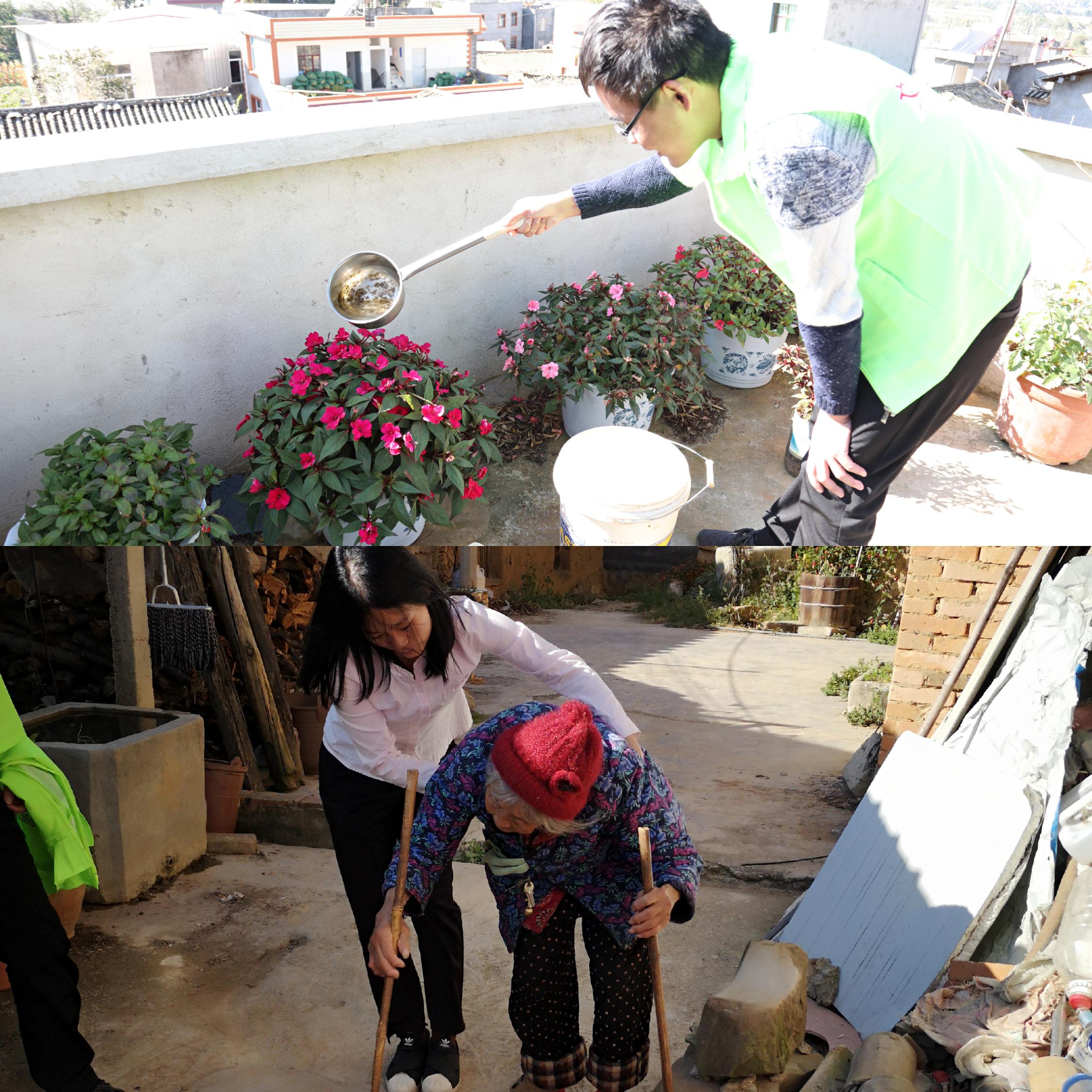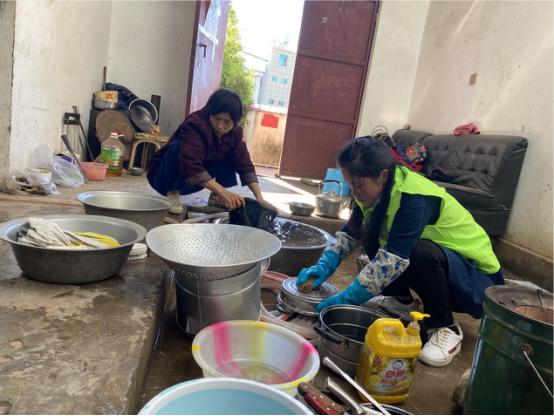 養瑞志愿者帶領趙才德一家進行大掃除