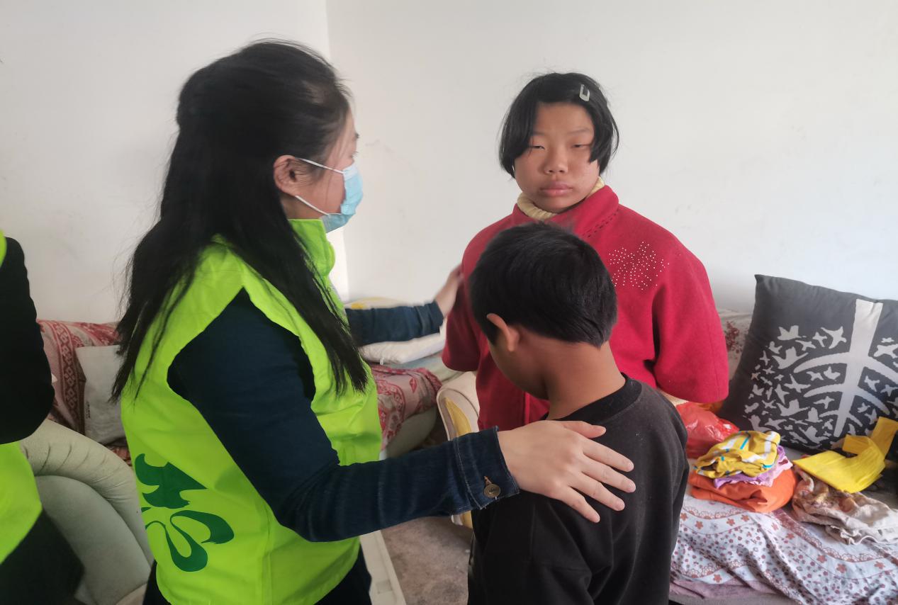 養瑞志愿者與李躍兵一雙兒女談心