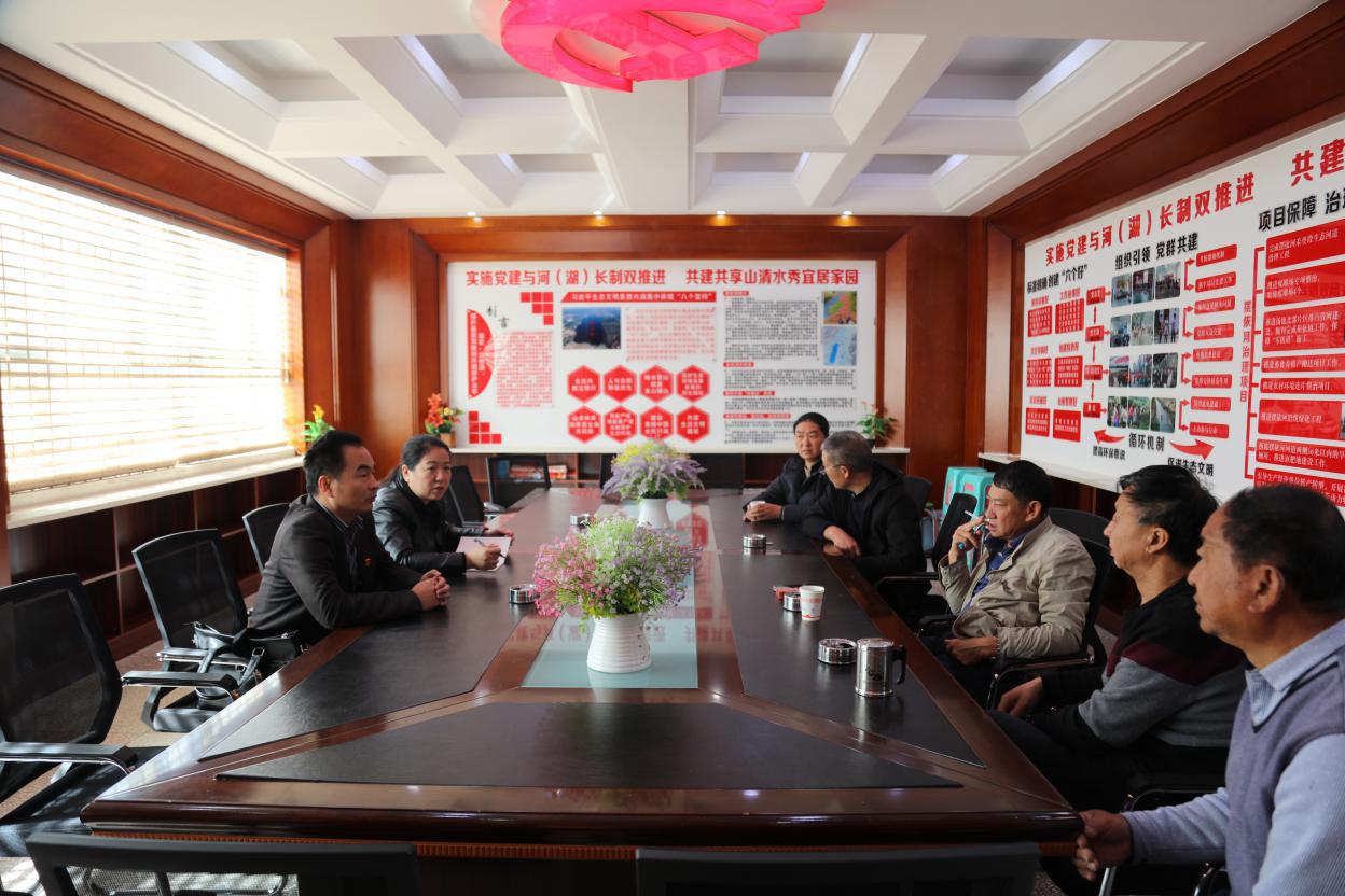 集團黨委副書記鄒清明、工會主席羅珺與禾登村村干部、楊光祥座談