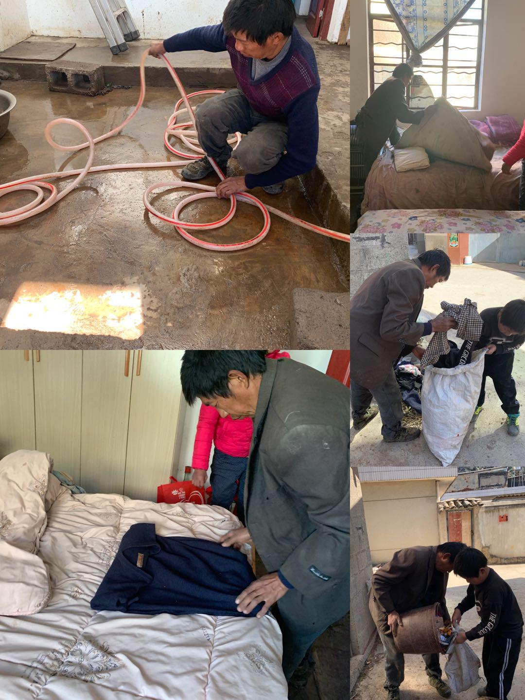 一大早,志愿者們便攜帶物資設備來到貧困戶李躍兵家中。李躍兵一家因常年身患智力疾病,一直以來家庭生活自理能力較差,家中大部分家務由上初中的女兒承擔。看到臟亂差的生活環境,志愿者們二話不說,擼起袖子、拿著掃帚開始清理衛生。