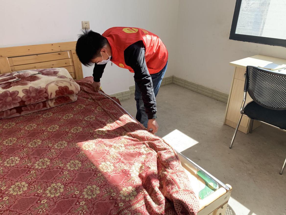 在新年即將到來之際,工會計劃幫他家里粉刷墻壁,添置一批新家具和生活物資。志愿者們手拿標尺開始測量墻壁面積,丈量李躍兵家的床、窗簾尺寸,人人忙得不亦樂乎。