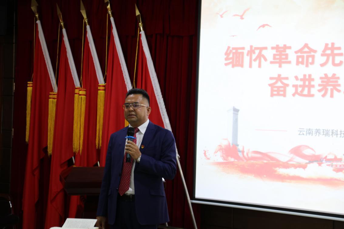 清明時節,追思悠悠。為學好黨史、緬懷先烈,教育引導全體養瑞黨員以先烈為鏡洗滌思想、凈化靈魂、提升境界,提高聽黨指揮、忠誠擔當的政治品格,樹立當標桿、做表率的黨員意識,錘煉忠誠、干凈、擔當的黨員作風,進一步發揮好集團黨員的先鋒模范作用,2021年4月9日,云南養瑞科技集團黨組織開展了以“緬懷革命先烈、汲取精神力量,奮進養瑞事業新征程 ”的主題黨日活動。