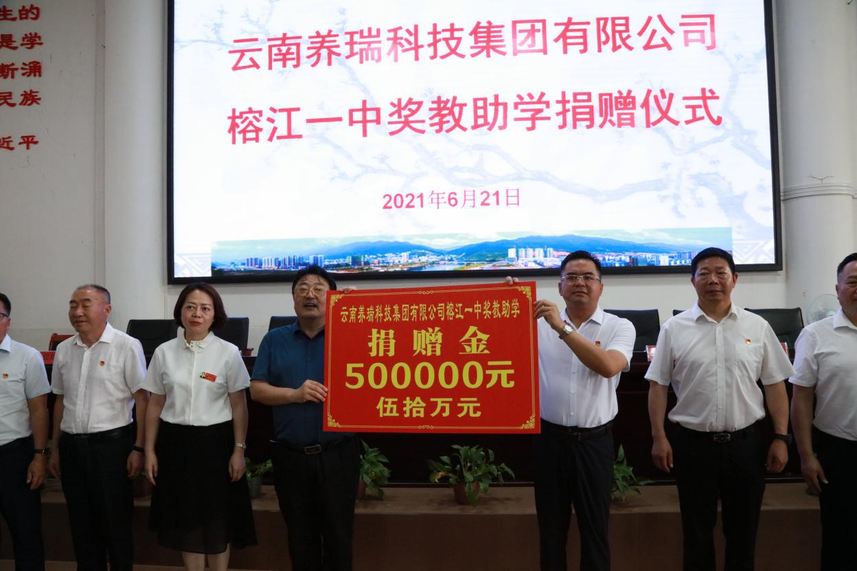 按照黨史學習教育“我為群眾辦實事”活動要求,為升華初心、踐行使命, 切實做到學黨史、悟思想、辦實事、開新局,助力少數民族地區教育事業發展,6月21日上午,集團在榕江縣第一中學開展獎教助學活動,榕江縣人民政府副縣長陳尚京,縣政協副主席金文鳳,出席捐贈儀式。集團黨委書記、董事長、總裁邵全向榕江縣第一中學捐款50萬元。