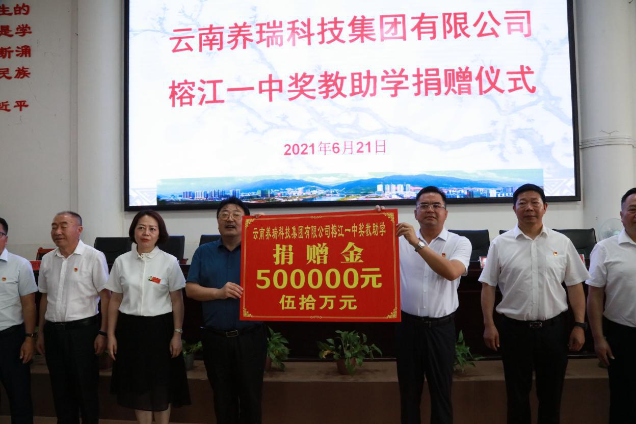 為助力少數(shù)民族地區(qū)教育事業(yè)發(fā)展,今年6月21日,云南養(yǎng)瑞科技集團(tuán)黨委書記、董事長、總裁邵全專程到貴州省榕江縣第一中學(xué)開展獎(jiǎng)教助學(xué)活動(dòng),向榕江縣第一中學(xué)捐款累計(jì)57萬元,并承諾今后將會(huì)對該??忌锨迦A大學(xué)、北京大學(xué)的學(xué)生獎(jiǎng)勵(lì)30萬元。