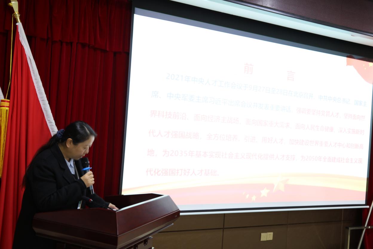 集團人資副總羅珺從“學習貫徹中央人才工作會議精神的重大意義、學習習近平總書記在2021年中央人才工作會議上講話精神、全面落實中央人才工作會議精神的實踐要求”三個方面領學習近平總書記在中央人才工作會議上的重要講話精神。她說,集團人才隊伍建設始終堅持黨對人才的全面領導,始終堅持實施創新驅動和人才強企戰略,始終堅持全方位培養、引進、使用、評價人才,培養高素質人才工作隊伍,打造“四過硬”養瑞“鐵軍”,引導全體養瑞黨員和養瑞家人重視人才隊伍建設,努力成為養瑞需要的高素質人才,真正把工作做實做細做精,從自己做起,從本職崗位做起,為實現養瑞夢助推中國夢貢獻智慧和力量。