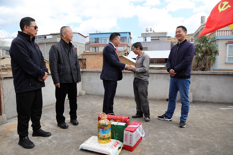 隆冬透寒意,慰問暖人心。1月14日,在中國傳統春節即將來臨之際,云南養瑞集團黨委書記、董事長、總裁邵全赴湯池走訪慰問與集團結對的3戶“共同富裕共建戶”,送上節日的慰問和祝福,讓楊光祥、李躍兵、趙才德及家人在數九寒冬里感受到絲絲暖意。原武警山東省警衛局局長舒明少將,原云南省食品藥品監督管理局副局長張豫昆,昆明陽宗海風景名勝區管理委員會黨工委副書記、區“兩新”黨工委書記張磊,養瑞集團黨委書記、董事長、總裁邵全出席慰問活動。