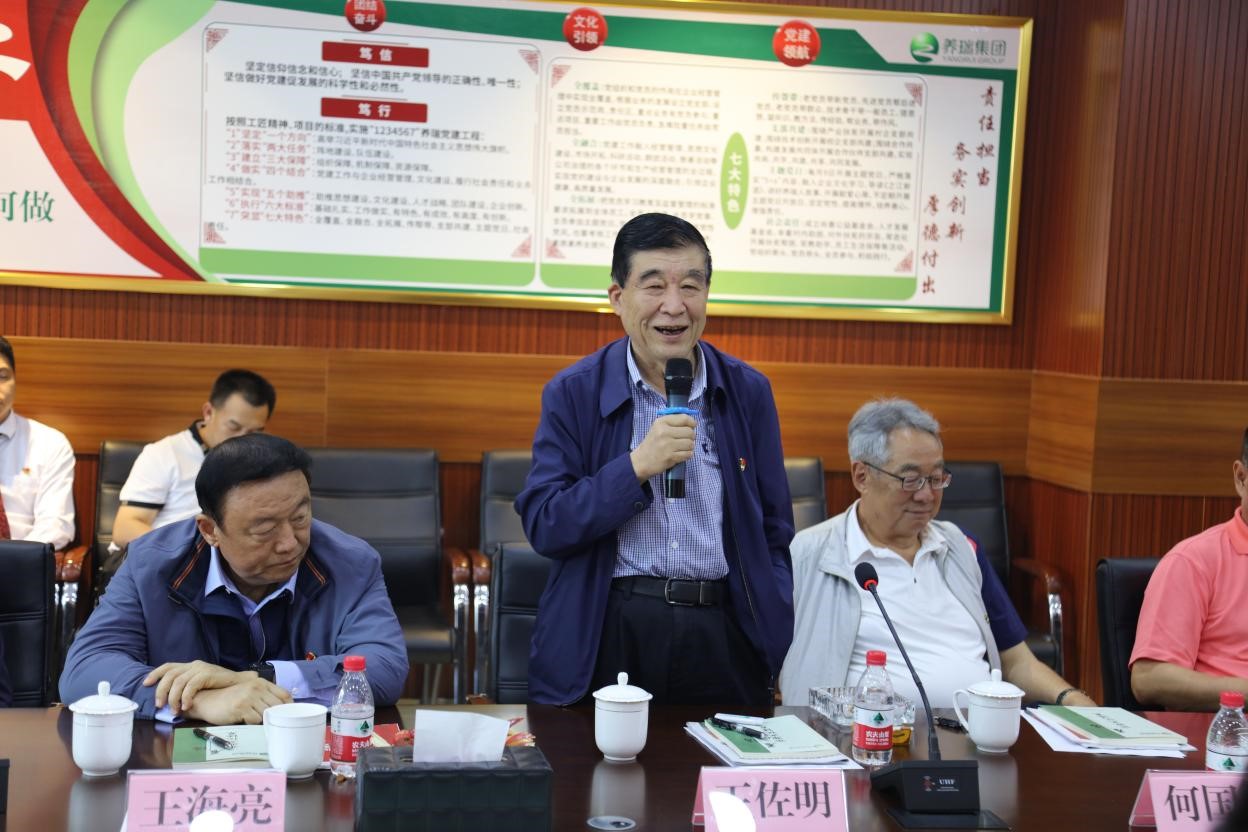 原武警云南省總隊(duì)政委少將王海亮在座談會(huì)上講話。他說(shuō),今天是一個(gè)非常重要的日子,非常好的日子,非常有意義的日子,受邀請(qǐng)與夫人一起參加活動(dòng),非常高興,也非常感謝,活動(dòng)中也很受啟發(fā)。參觀完之后感悟非常深,可以看得出集團(tuán)黨建工作站位很高、很實(shí),作為民營(yíng)企業(yè)能夠把黨建做得與經(jīng)營(yíng)管理相結(jié)合,把黨建作為引領(lǐng)、作為鞭策、作為激勵(lì),有效的促進(jìn)企業(yè)高質(zhì)量發(fā)展。養(yǎng)瑞集團(tuán)黨建引領(lǐng)企業(yè)高質(zhì)量發(fā)展的經(jīng)驗(yàn)和做法,深刻地回答了如何做實(shí)黨建工作的問題、如何發(fā)揮作用的問題。集團(tuán)的黨建工作有很強(qiáng)的措施和辦法,可以看得出是動(dòng)了腦筋、用了心思、下了功夫,總結(jié)出了一系列指導(dǎo)企業(yè)發(fā)展的法寶,有著正確的方法指引。集團(tuán)特別注重企業(yè)文化的建設(shè),把中華民族優(yōu)秀傳統(tǒng)文化、黨的百年奮斗歷史經(jīng)驗(yàn)、人民軍隊(duì)的優(yōu)良傳統(tǒng)與企業(yè)的建設(shè)、員工隊(duì)伍建設(shè)有機(jī)結(jié)合,實(shí)現(xiàn)了企業(yè)發(fā)展的文化自信。最大感觸是領(lǐng)路人的情懷很深,對(duì)內(nèi)助困,成立人才基金,在集團(tuán)工作滿3年的優(yōu)秀員工,就可以向人才發(fā)展基金申請(qǐng)30-50萬(wàn)元的無(wú)息貸款,工作滿20年,本金就不用還,增加了員工獲得感、幸福感和安全感。對(duì)外通過(guò)直接幫扶、扶貧扶智和產(chǎn)業(yè)幫扶的方式,積極弘揚(yáng)企業(yè)家精神,履行社會(huì)責(zé)任,關(guān)心關(guān)愛退伍軍人,體現(xiàn)了深厚的家國(guó)情懷和人民情懷。在疫情期間,充分發(fā)揮黨員先鋒模范作用和黨組織的戰(zhàn)斗堡壘作用,集團(tuán)的發(fā)展充滿了活力,行穩(wěn)致遠(yuǎn)。養(yǎng)瑞今天取得的成果來(lái)之不易,希望今后養(yǎng)瑞能夠朝著更高的榮譽(yù)前進(jìn),團(tuán)結(jié)奮斗做出更大的貢獻(xiàn)。