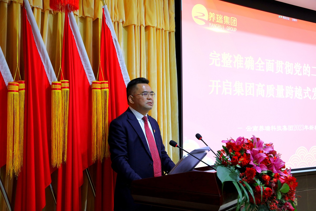 云南養瑞集團黨委書記、董事長、總裁邵全在新春年會上全面總結了集團2022年的各項工作,回顧了一年來在黨建工作、科技創新、產業發展等方面取得的可喜成績,深入剖析發展過程中存在的不足,就2023年的發展指明了方向,號召全體養瑞人以昂揚狀態奮斗姿態喜迎十周年慶典。 邵全在年會上指出,2022年,集團始終高舉習近平新時代中國特色社會主義思想的偉大旗幟,把黨建工作做實、做細、做出成效、做出特色,用二十大精神指導養瑞人干事、謀事、成事。集團始終圍繞“滿足市場需求、引領市場發展、形成核心技術、促進戰略實現、實現行業領先”五大任務,加大科技創新和自主品牌研發,投入研發經費1200萬元,廣泛開展市場推廣和技術交流;廣泛吸納德才兼備的優秀科技人才和管理人才,還通過了“云南省知識產權優勢企業”和“云南省專精特新‘成長型’企業”認定,科技創新實力進一步提升。此外,集團堅持“工業反哺農業”的發展思路,緊緊圍繞傳統煙草、新型煙草和大健康產業,不斷固本強基、提質增量,始終把發展的主動權掌握在集團手中,新型煙草業務訂單擴大,市場呈現穩固攀升的良好態勢,發展前景進一步廣闊。集團始終牢記辦企初心,始終把人民放在心上,用發展成果惠及人民,用養瑞力量推動構建中華民族共同體,并且充分發揮3個基金會作用,廣泛開展產業幫扶、捐資助困、獎教助學、慈善和社會公益活動,持續擴大共同富裕共建戶數量,不斷提高服務和保障人民群眾生產生活的質量和效果。