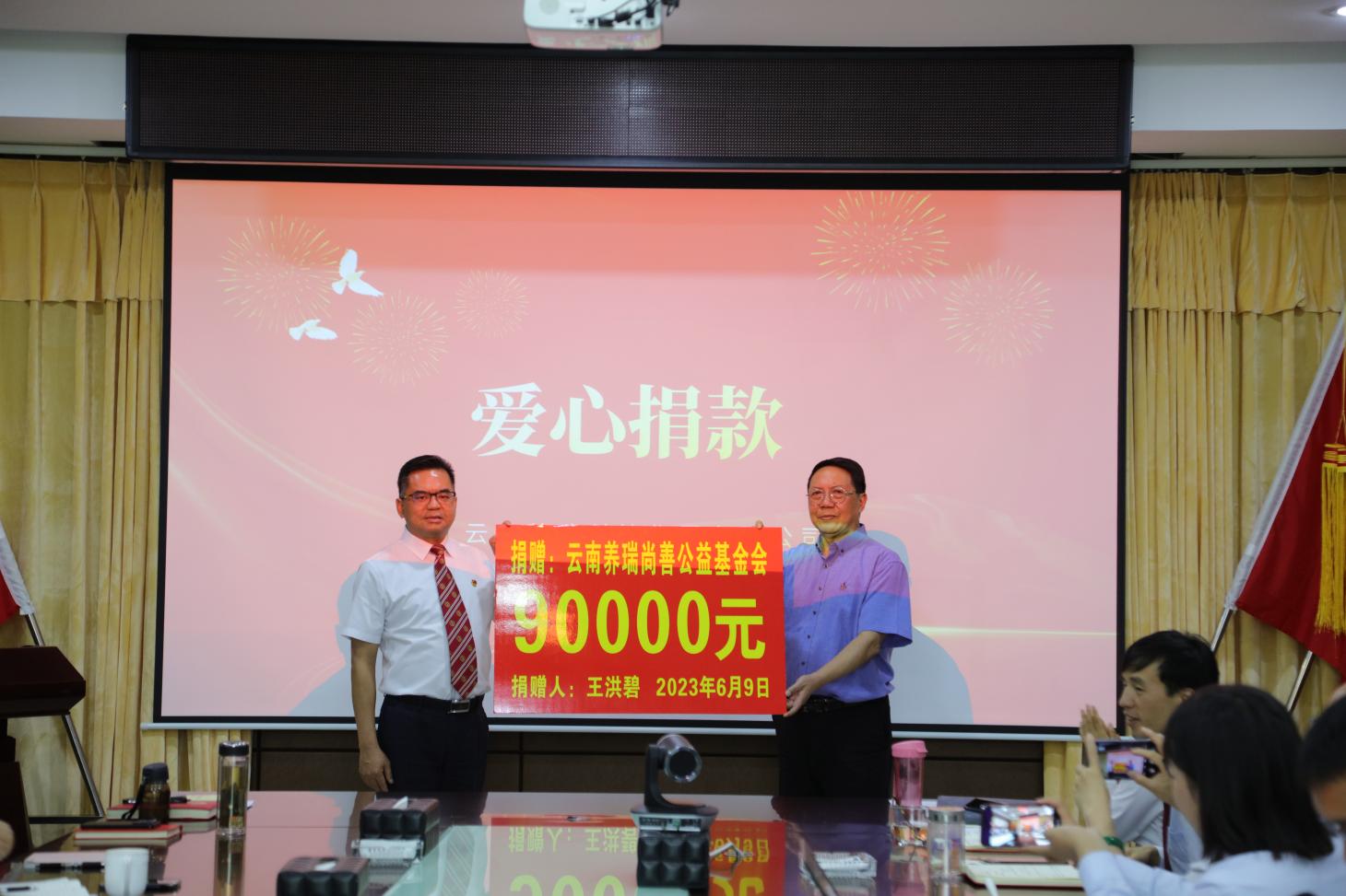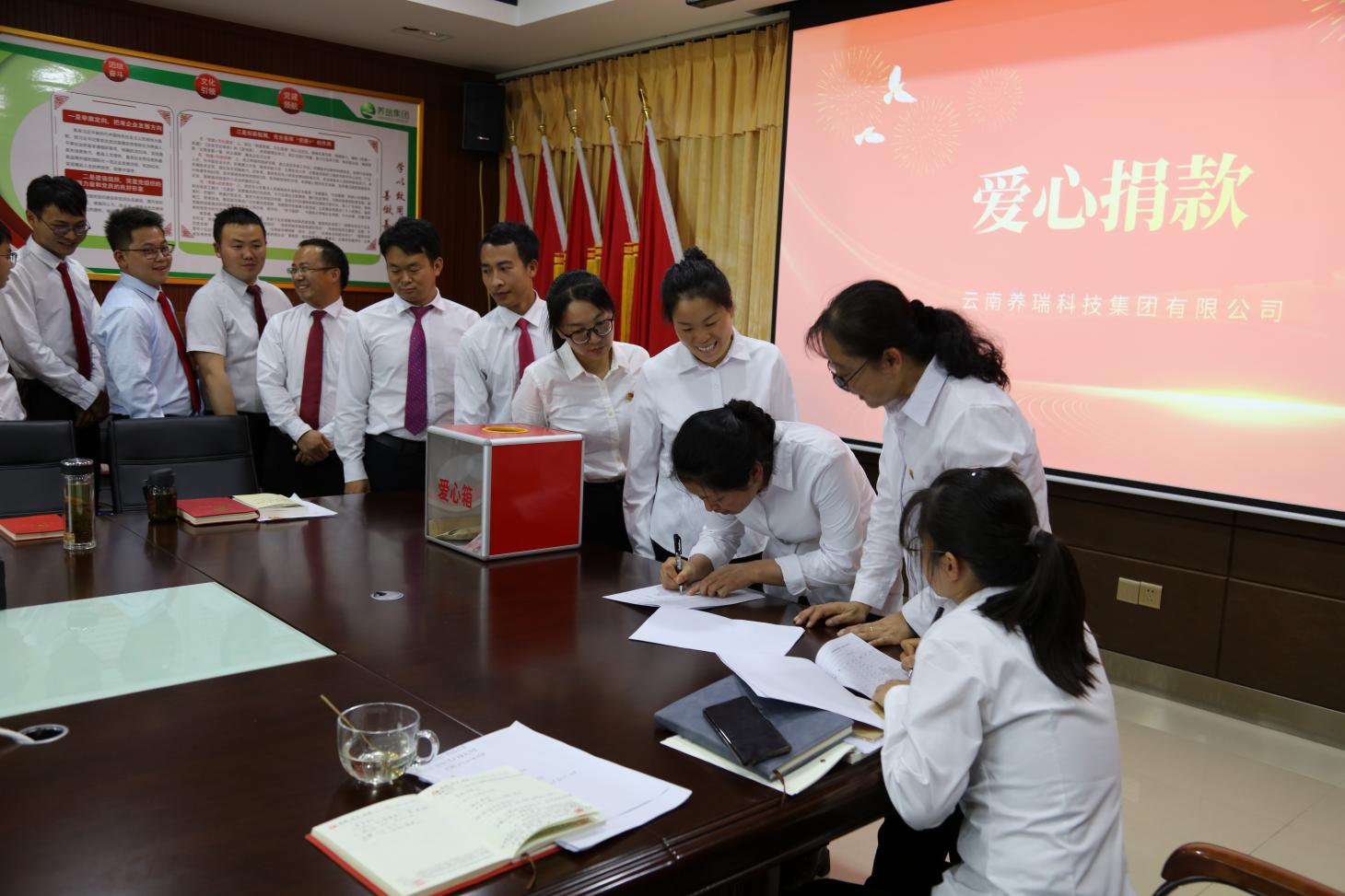 羅珺領(lǐng)學(xué)邵書記在梁河“5.20”獻愛心捐贈儀式上的講話精神 按照慣例,這次的6月主題黨日上,集團組織了半年一次的獻愛心捐款活動。全體養(yǎng)瑞人積極踐行“為善最樂、付出最富”的核心價值理念,本著自覺自愿、量力而行原則,積極主動捐款,彰顯養(yǎng)瑞人的社會責(zé)任擔(dān)當(dāng)。捐款活動以集團黨委書記、董事長、總裁邵全和集團顧問黃國祥、王洪碧、練昌祥帶頭,他們每人拿出9萬元的善款充實養(yǎng)瑞尚善公益基金會,隨后全體養(yǎng)瑞人依次主動捐款,短短10分鐘,全體養(yǎng)瑞人共捐款79.62萬元。