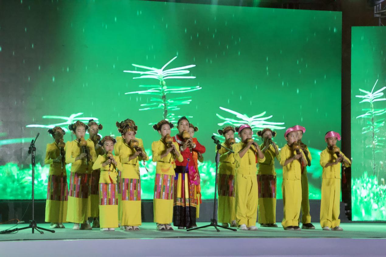 梁河縣是葫蘆絲的故鄉(xiāng),葫蘆絲在梁河有著廣泛的群眾基礎(chǔ),三度被國家文化部命名為“中國民間文化藝術(shù)之鄉(xiāng)——梁河葫蘆絲之鄉(xiāng)”。由梁河傣學(xué)會推出的葫蘆絲合奏《春滿傣鄉(xiāng)》,瞬間就把觀眾帶入一個清新、寧靜的傣家世界,感受傣族同胞對美好生活的追求;《傣家時裝秀》展現(xiàn)了傣族服飾古樸大方而又不失美麗端莊和雅致的文化藝術(shù)。云南養(yǎng)瑞科技集團(tuán)大合唱《走向復(fù)興》,優(yōu)美動人的旋律,嘹亮的歌聲和熱烈的掌聲將晚會推向高潮。另外,梁河景頗學(xué)會推出的《舂米》《幸福哦嘫嘫》,阿昌學(xué)會推出的《今天好時光》,傈僳學(xué)會推出的《傈僳三弦舞遷徒調(diào)》,佤族學(xué)會推出的《加林賽》等節(jié)目輪番上演,展現(xiàn)了梁河兒女永遠(yuǎn)跟黨走的堅定信念和繼續(xù)守初心、擔(dān)使命,為國家富強(qiáng)、民族復(fù)興奉獻(xiàn)力量的決心。
