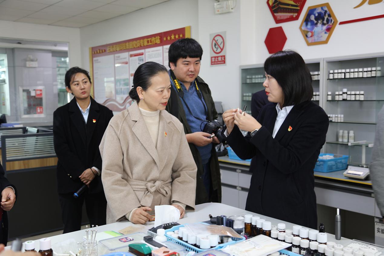 在參觀集團黨建文化和企業文化長廊過程中,紀俊玲教授一行認真聆聽介紹,不時駐足觀看,詳細詢問有關情況,走進黨員專家工作站,與研發人員親切交流,并觀看了集團宣傳片《榜樣的力量》。了解到養瑞在“黨建引領、文化領航”下,公司在經營管理、助力鄉村振興、促進民族團結、開展獎教助學和助弱扶困等方面均取得了一系列標志性成果,表示將向養瑞學習黨建經驗,促進科研進一步發展。在技術交流環節,雙方就材料開發、技術創新等方面工作展開深入探討,達成多項共同推進的合作意向,表示將發揮各自優勢,在專業和產業上共同發展。