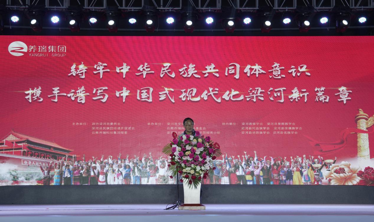 梁河縣政協主席李繼鴻出席此次晚會并致辭。他指出,在養瑞集團的大力支持下,梁河縣成功創建為省級民族團結進步示范縣,開啟了民族團結進步事業的嶄新局面。他表示今后要緊緊圍繞示范創建提級目標,政企攜手,共同推動黨的民族理論入腦入心、民族政策落地落實,全面推進民族團結進步事業向前發展。