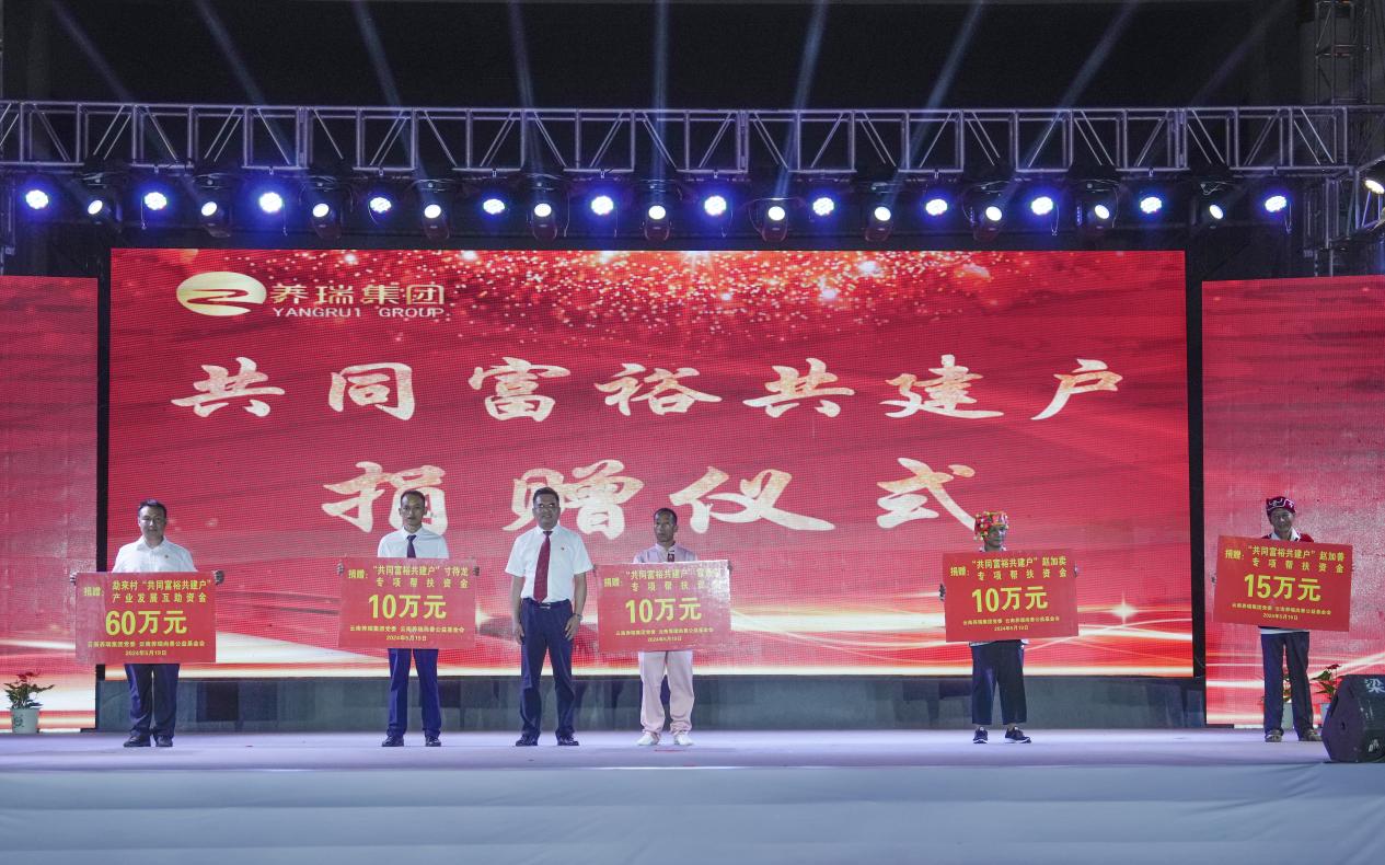 邵全說,本次活動的開展是基于全體養瑞人學習貫徹習近平新時代中國特色社會主義思想的實踐要求,是基于養瑞人踐行黨“全心全意為人民服務”的宗旨和落實“為善最樂,付出最富”的核心價值理念的必然要求,是基于養瑞人推動帶領梁河人民實現共同富裕、譜寫中國式現代化梁河新篇章的責任要求。今后集團將重點做好三個項目:一是一體化推進黨建引領民族團結與鄉村振興融合發展項目;二是持續推進共同富裕共建戶項目;三是正式啟動關心下一代“星火筑夢”計劃,推動更多的梁河人民增收致富,為有效解決空殼村莊、留守兒童和鄉村治理問題貢獻力量,為今后開展民族團結和鄉村振興工作開辟新賽道、創新新理念、形成新方法,為民族團結和鄉村振興工作做出示范和標桿。在這個過程中,希望梁河各民族同胞們和養瑞一起,與黨同心、跟黨奮斗、挺膺擔當、主動作為,永遠做習近平新時代中國特色社會主義思想的堅定捍衛者、忠誠踐行者和積極傳播者,堅定做強國建設、民族復興的參與者、建設者和奮斗者,堅定做民族團結、鄉村振興、共同富裕的先行者、領跑者和示范者。我們將投入更多的人力、物力、財力、精力,為梁河人民謀幸福,為梁河社會謀發展做出新的更大貢獻。