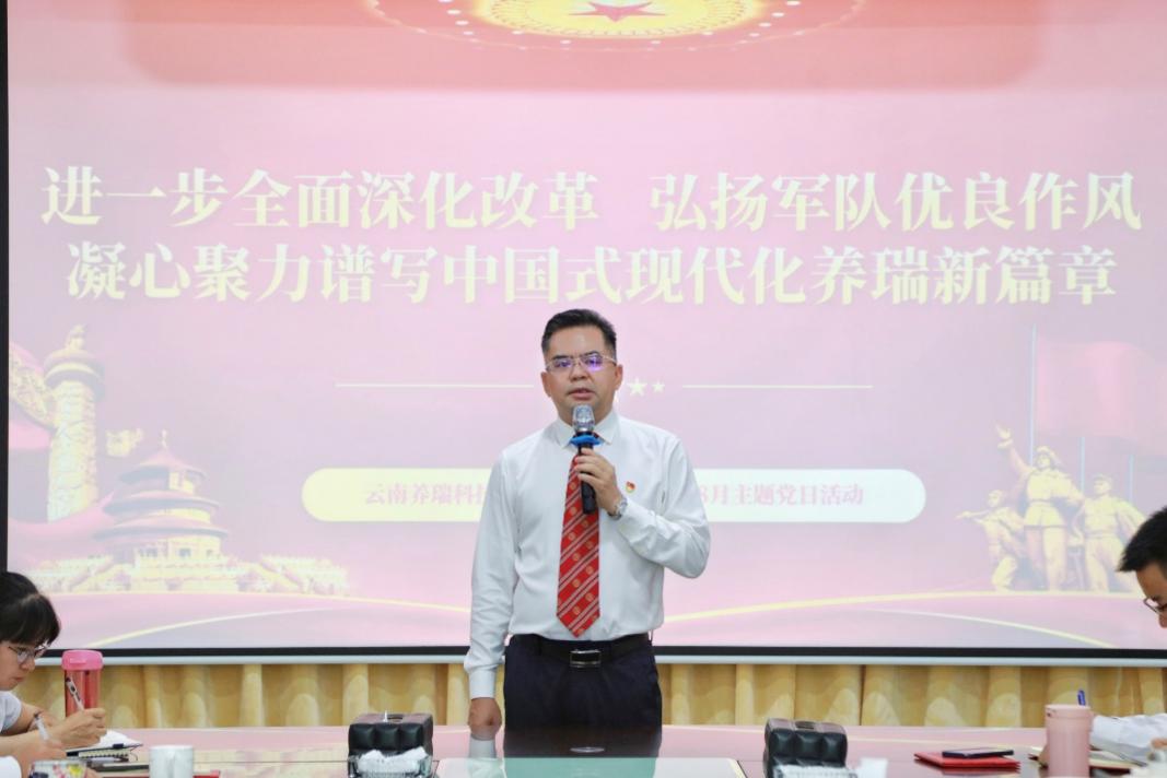 為全面深入學(xué)習(xí)貫徹二十屆三中全會(huì)精神,繼承和弘揚(yáng)我黨我軍的優(yōu)良作風(fēng),激勵(lì)全體養(yǎng)瑞職工凝心聚力推動(dòng)養(yǎng)瑞事業(yè)高質(zhì)量發(fā)展,譜寫中國(guó)式現(xiàn)代化養(yǎng)瑞新篇章,2024年8月19日,養(yǎng)瑞集團(tuán)組織舉辦8月主題黨日學(xué)習(xí)活動(dòng)。集團(tuán)黨委書記、董事長(zhǎng)、總裁邵全出席活動(dòng)并發(fā)表重要講話,集團(tuán)在昆員工、邵全名書記工作室第二批學(xué)員等百余人參加了集中學(xué)習(xí)。
