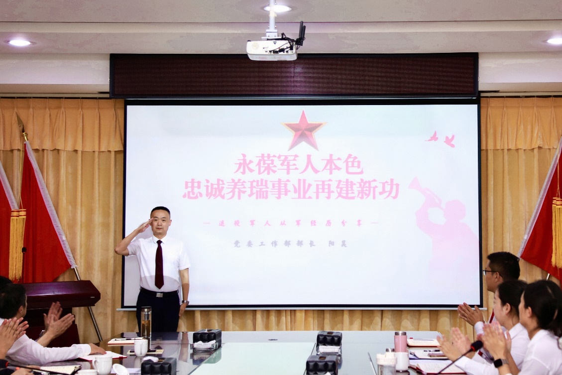 本次主題黨日,在規(guī)定動(dòng)作基礎(chǔ)上,積極融入了特色內(nèi)容。響應(yīng)中國(guó)關(guān)工委關(guān)于全國(guó)青少年“中華魂”主題教育活動(dòng)的有關(guān)要求,集團(tuán)關(guān)工委組織了教育啟動(dòng)儀式,安排青年黨員代表?xiàng)钤聢@分享了毛澤東的《七律·人民解放軍占領(lǐng)南京》,展現(xiàn)了人民解放軍英勇無畏堅(jiān)定信念的革命精神。集團(tuán)黨委委員陽昊作為退役軍人代表分享了二十余年的從軍經(jīng)歷,講述了在部隊(duì)鍛煉成長(zhǎng)、刻苦訓(xùn)練、忘我工作、服務(wù)人民的感人瞬間,進(jìn)一步激發(fā)了集團(tuán)員工對(duì)黨、對(duì)軍隊(duì)的熱愛,增強(qiáng)了學(xué)習(xí)部隊(duì)優(yōu)良作風(fēng)的激情,為全面推動(dòng)集團(tuán)高質(zhì)量發(fā)展奠定了堅(jiān)實(shí)的思想基礎(chǔ)。