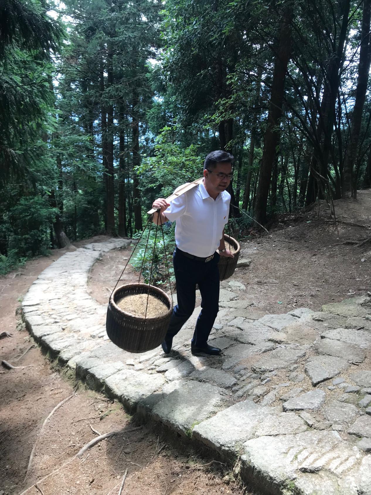 這段小道非常崎嶇狹窄,寬不到一米,很多地方只容一人通過,雖然是體驗一小段路程,但只要挑上糧食,攀登不久就已氣喘吁吁。集團總裁邵全動情地說:“我們只挑了這么一點重量,走了一兩百米山路,就已經疲憊難當,遙想當年,毛主席、朱老總和紅軍們每人要挑100多斤糧食上山,每天來回要走100多里地,那樣的艱辛確實難以想象?!秉h總支副書記李燕深有感悟的說:“井岡山精神絕不是一句空話,而是一種無堅不催的理想和信念。”