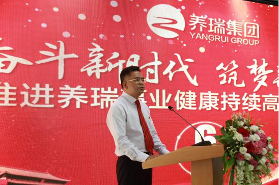 來建設發展成果:第一、高舉旗幟,黨建文化成效明顯;第二、開拓創新,三大產業提質增效;第三、科學管理,企業發展正規有序;第四、人才強企,集團發展后勁夯實;第五、合作共贏,市場平臺日趨寬廣;第六、人民至上,社會責任扛在肩上。分享了六年來發展的經驗:高舉習近平新時代中國特色社會主義思想偉大旗幟,把養瑞事業融入黨和國家大局的發展,是緊跟黨和國家戰略步伐和行業要求,按照養瑞戰略安排和發展規劃,把實現個人夢、養瑞夢和中國夢緊密聯系在一起的發展。養瑞發展取得的一系列成就,最根本、最主要、最關鍵的是源于養瑞人一以貫之的“七個堅持”(堅持黨的絕對領導;堅持以人民為中心的思想;堅持新發展理念;堅持創新驅動和人才強企戰略;堅持依法依規科學管理;堅持開放合作,踐行“大家好”的經營理念;堅持弘揚企業家精神履行社會責任)。