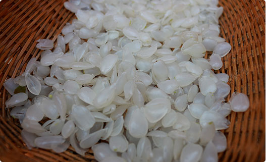 皂角米俗稱雪蓮子、皂角仁、皂角精,是皂角樹種子皂角籽的一部分,目前只能手工剝開皂角殼取出皂角籽,再用自制小刀剝開皂角籽取出完好皂角米,之后在太陽下自然曬干后密封保存。每一粒皂角米都得來不易,1Kg皂角籽僅能剝出300g皂角米,數(shù)量稀少。